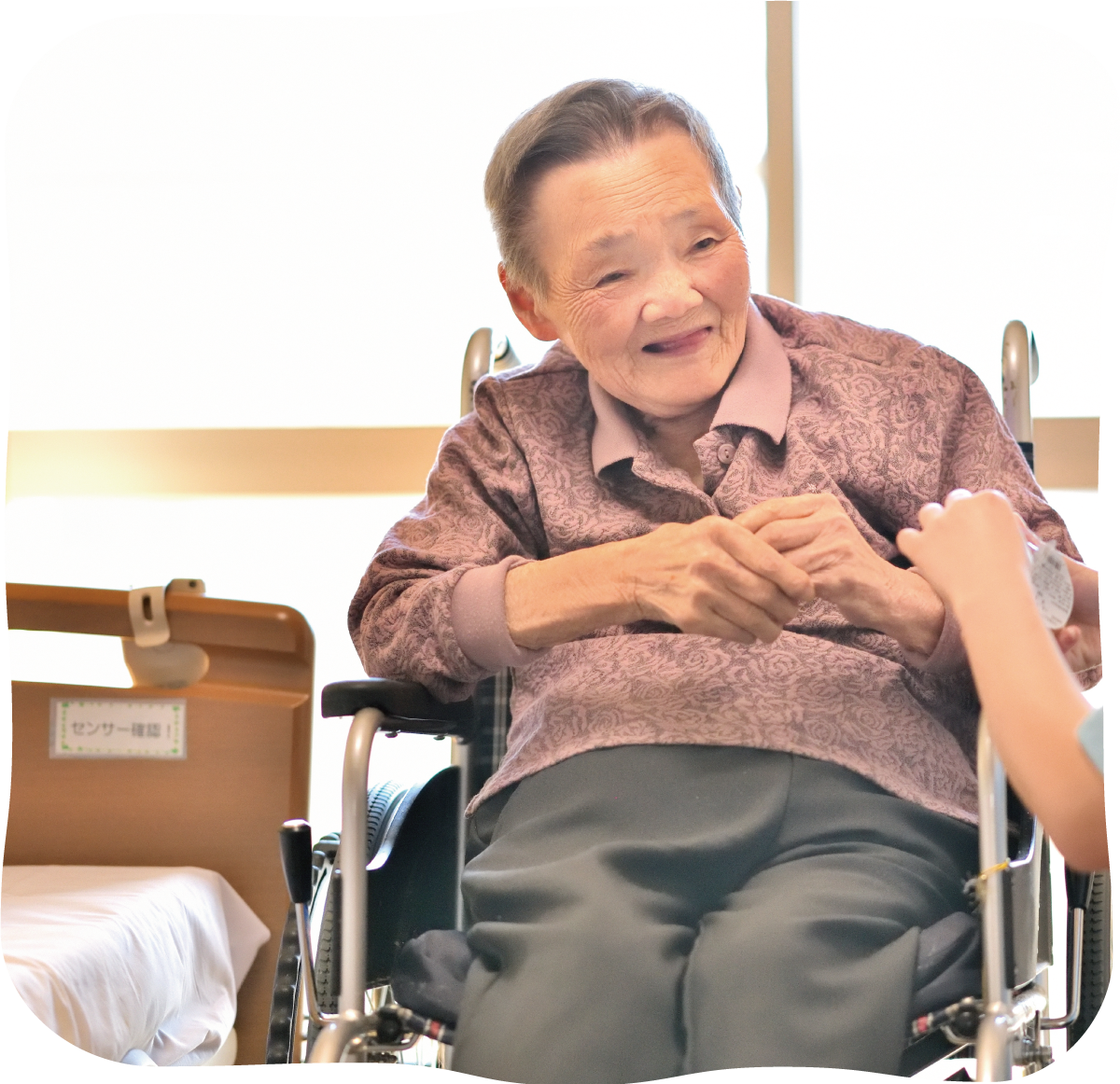 朝起きて最初にカーテンを開けるか、服を着替えるか。このような日常のほんのささいな瞬間にこそ「自分らしさ」が潜んでいると、私たち和里(にこり)は、考えています。完全個室のユニットケアを基本とした和里(にこり)は、ひとりひとりの生活者に合わせた支援を行っています。可能な限り、自宅で過ごされていたときと変わりのない生活リズム、暮らしのスタイル、自分なりのこだわりや役割を和里(にこり)の中でも実現します。それは、物理的にも精神的にも、和里(にこり)が「居場所」となるための支援です。