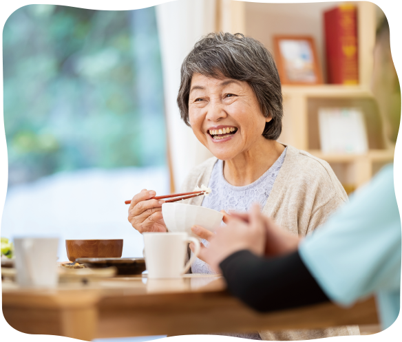私たちの支援の根底には、「他者への関心」があります。相手が何を望んでいるのか、何に不安を感じているのか、何を大切にしているのか。日々の関わりを通してそれらに思いをめぐらせることが、生活者ひとりひとりに合わせた最適な支援へとつながります。自宅で過ごされていたときと変わることのない、当たり前の日常を輝かせることこそが、私たちが目指す支援です。
